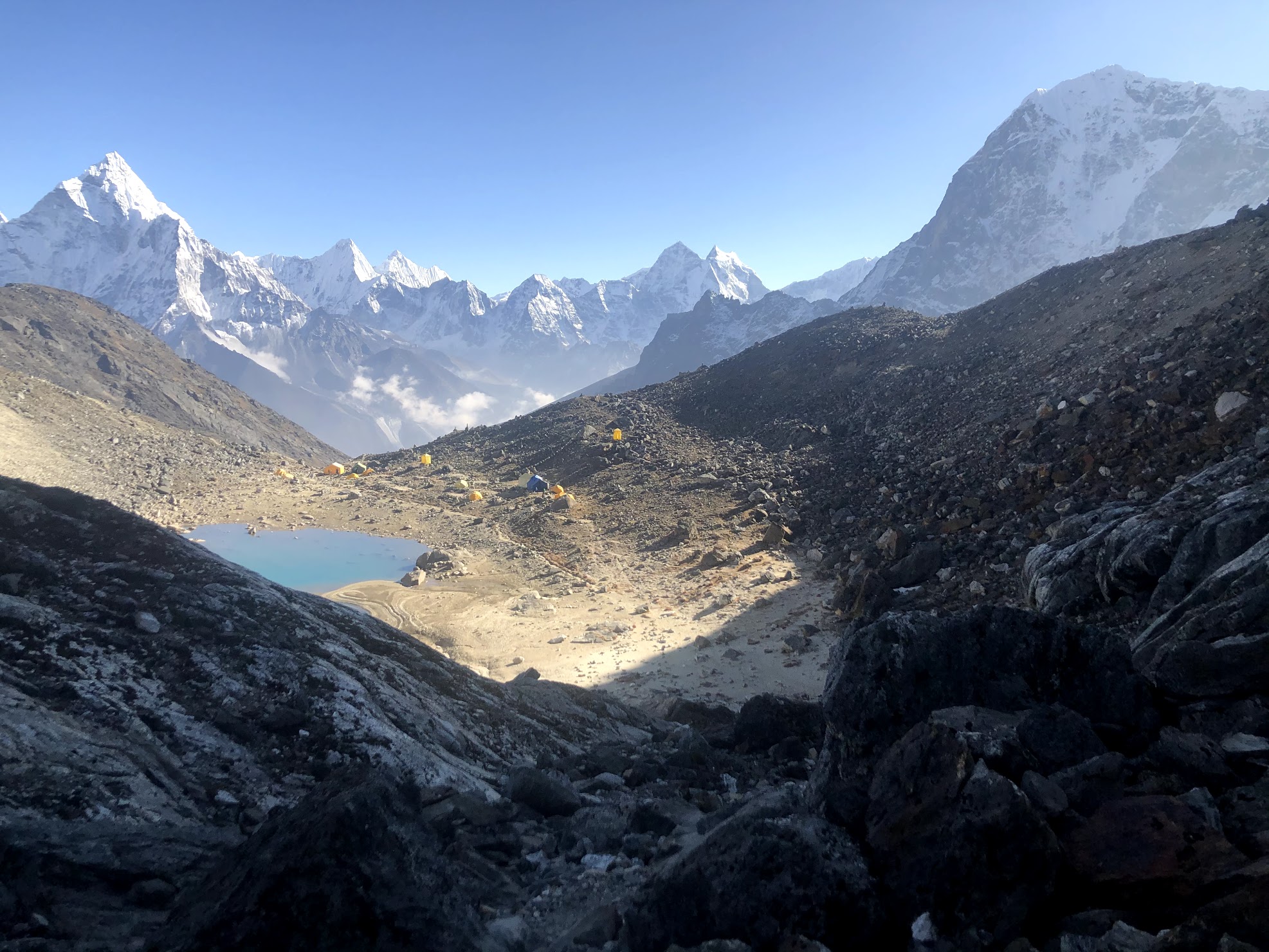 Published June 18, 2020 at 1973 × 1480 in Looking down on Lobuche High Camp coming from summit